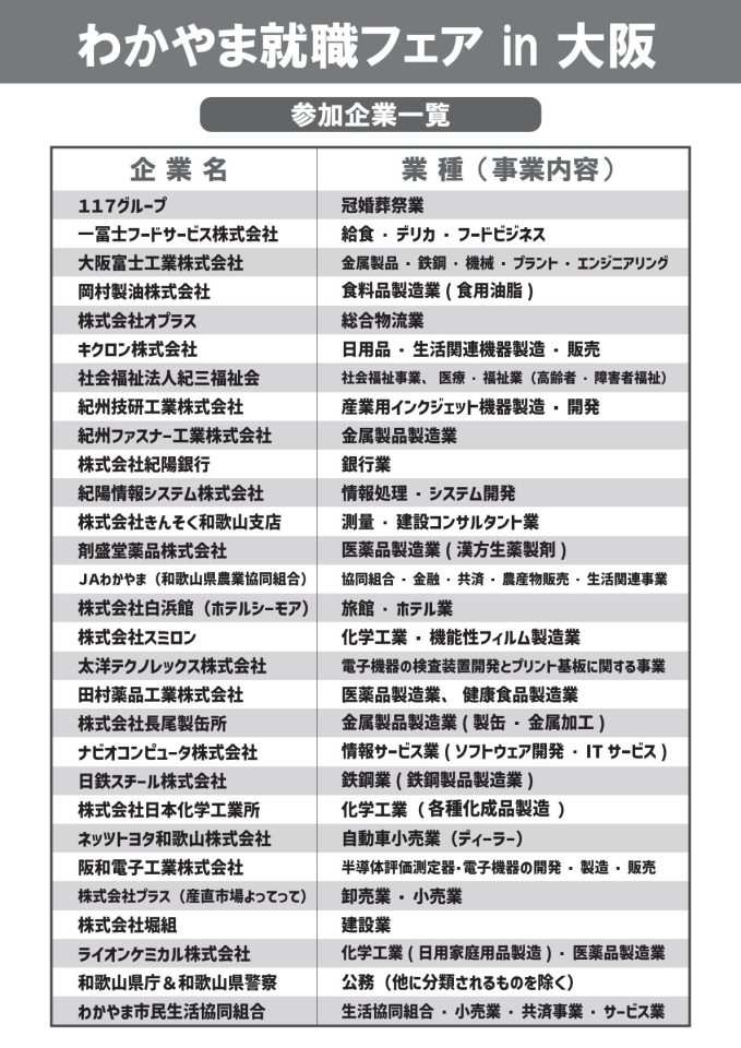 3. 【3/7(土)開催】わかやま就職フェアin大阪