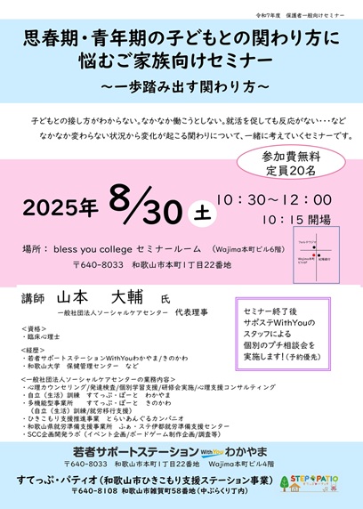 1)思春期・精選機の子どもとのかかわり方に悩むご家族むけセミナー~一歩踏み出す関わり方~