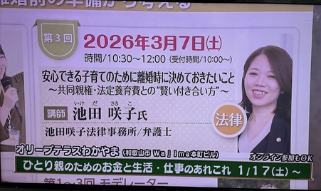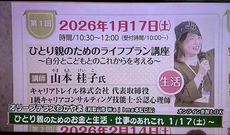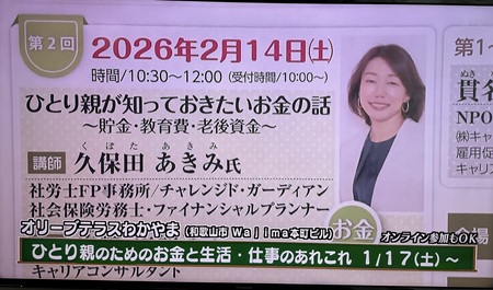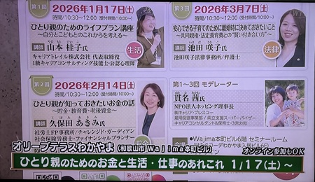 1月から3回シリーズで実施されるセミナーは「ひとり親が知っておきたいお金の話~貯金・教育費・老後資金~(自分とこどもの未来をみつける)」です。